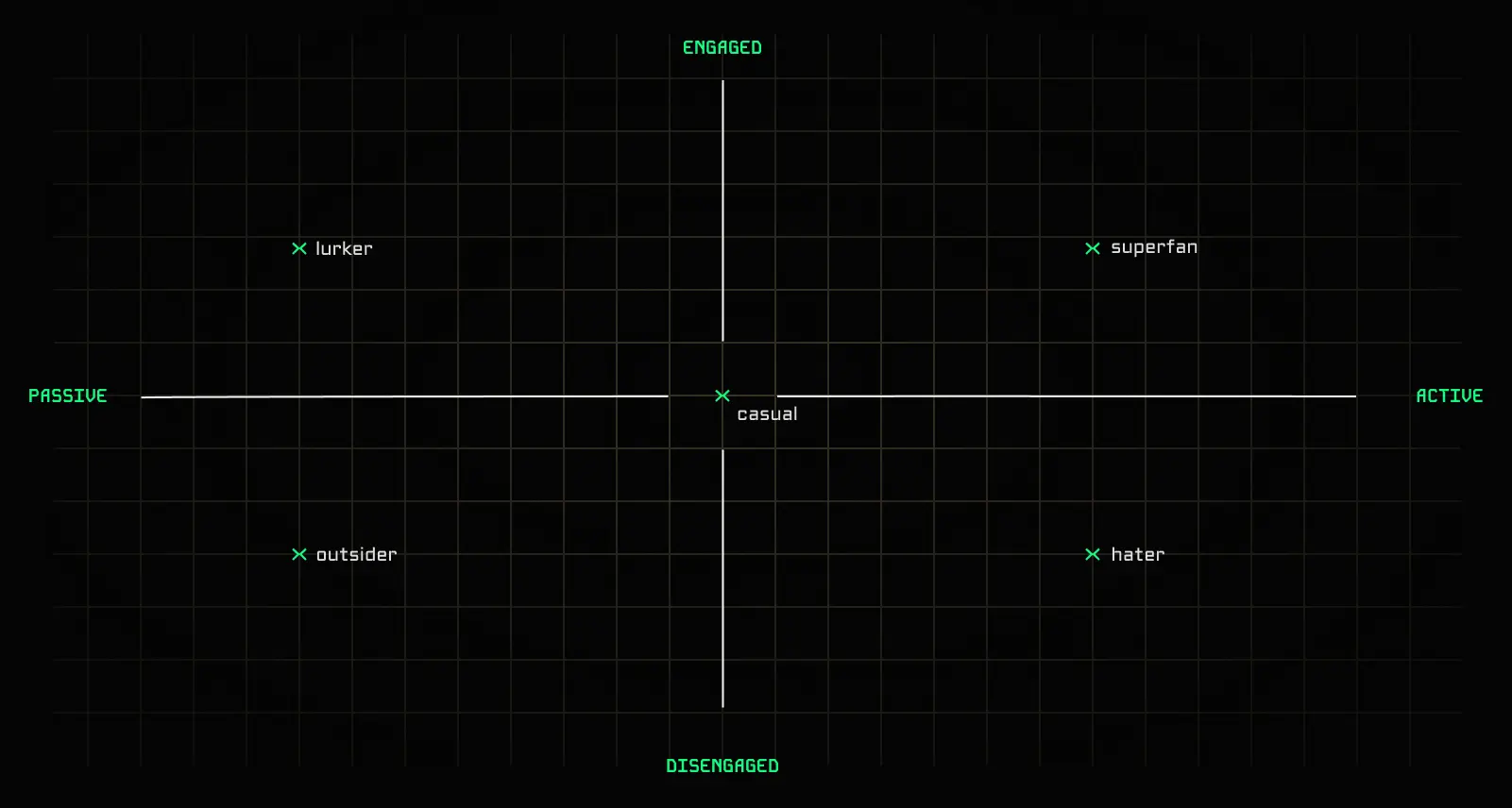 Research findings informed the user personas I created, from casual viewers to superfans. Together with management, I determined the strategic focus: active, engaged users represented the highest-value segment. While casual viewers represented larger absolute numbers, active fans possessed: